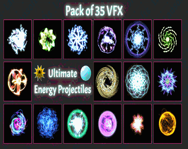 This pack includes 35 high-quality 2D energy orb VFX designed for fast integration into indie games and visual projects. The effects feature glowing spheres, pulsing cores, swirling energy layers, and radiant bursts—ideal for magic projectiles, charged attacks, energy spells, sci-fi weapons, boss abilities, and high-impact combat scenarios.